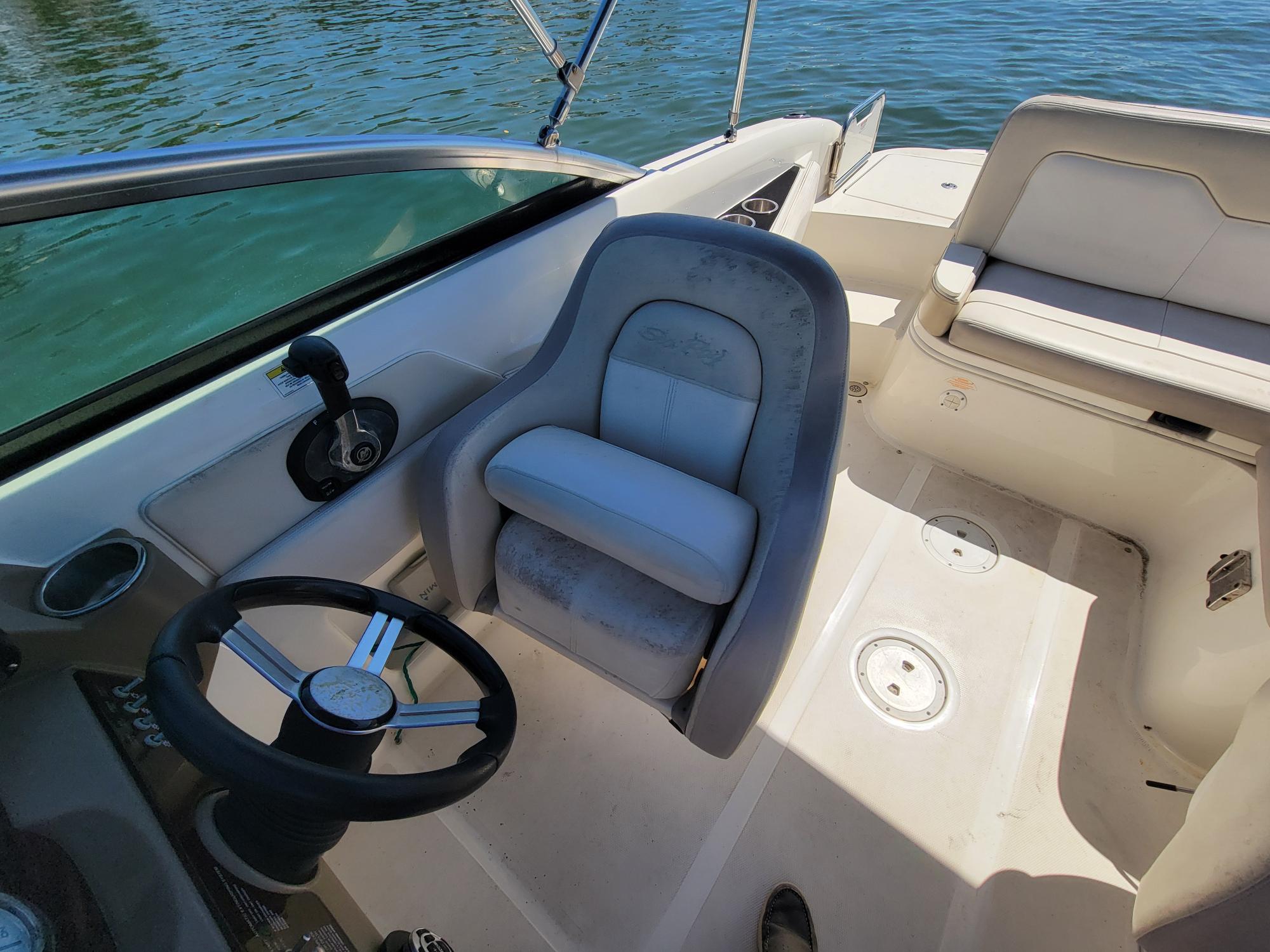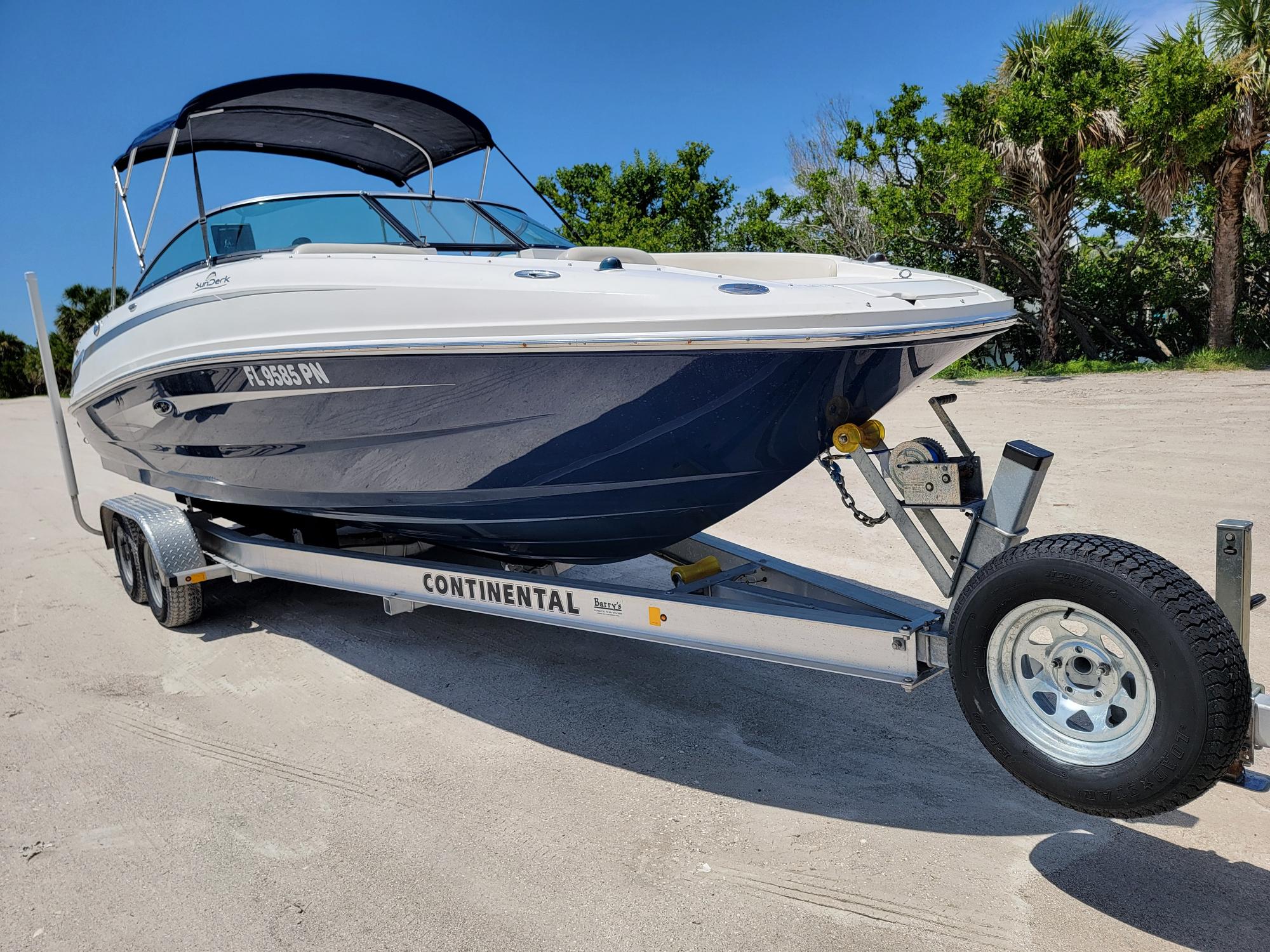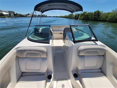 Spacious Deckboat with ample seating for family and friends, beautiful upholstery, With Powerful Mercruiser 5.0 V8 motor, Bravo 3 dual prop Qualifies for optional motor warranty, bimini, cockpit / bow covers, walk-through transom, pop-up cleats, cockpit sink, cockpit table, dual captain's chair w/ bolsters, Vacu-Flush head with holding tank Garmin GPS Fishfinder, JVC Sound system with bluetooth, comes with aluminum trailer and much more... For more information or to schedule a time to see this vessel call 941-485-9500 or text 913-485-4172 or email Dave@cmcboats.com. Financing available including those with less than perfect credit. To see a Video Sea Trial of this vessel go to: https://youtu.be/5stTS8dycqM