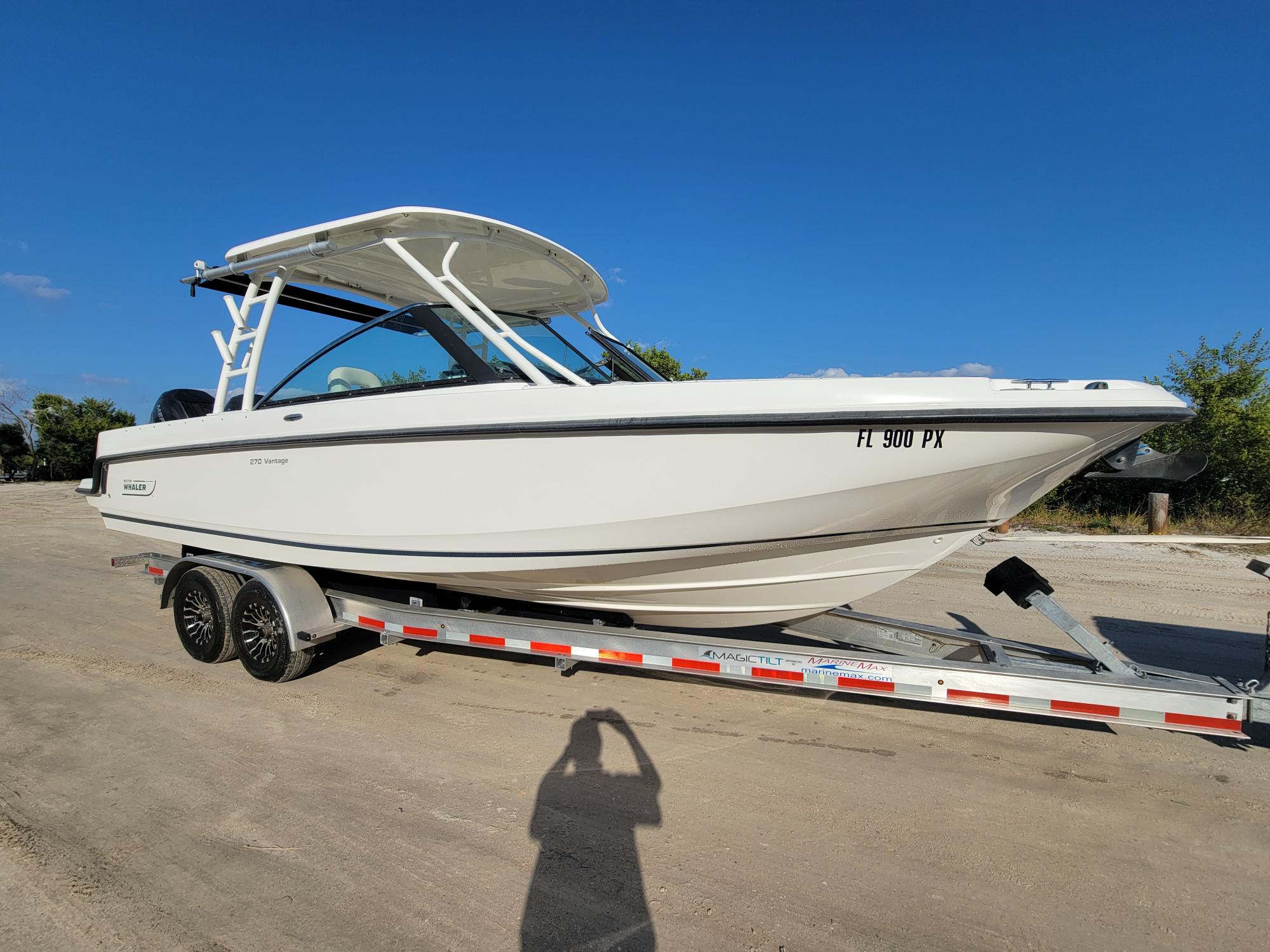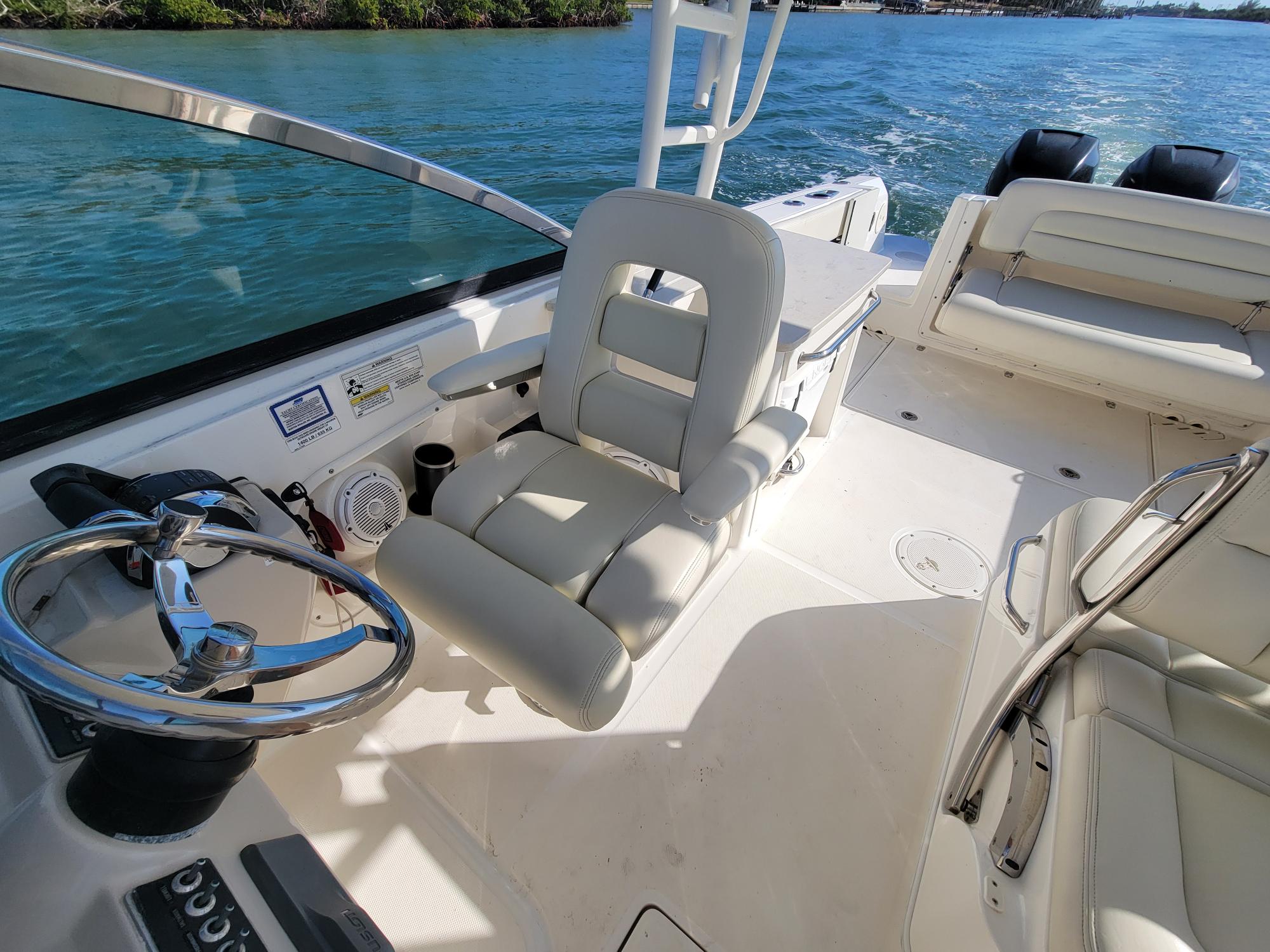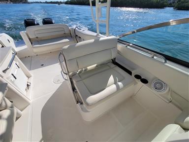 Popular Vantage dual console in excellent condition, Nice upholstery With twin 225 HP Mercury Verado, engines with 24 mo. motor warranty, Trim tabs, ski pole, fuel water separator, walk-through transom, live well, pop-up cleats, windlass, Raymarine built in GPS Fishfinder, VHF and much more...Does not come with trailer. For more information or to schedule a time to see this vessel call 941-485-9500 or text 913-485-4172 or email Dave@cmcboats.com. Financing available including those with less than perfect credit.