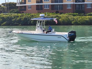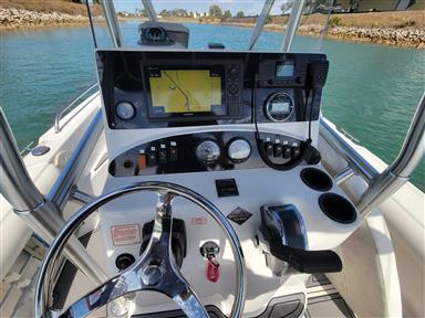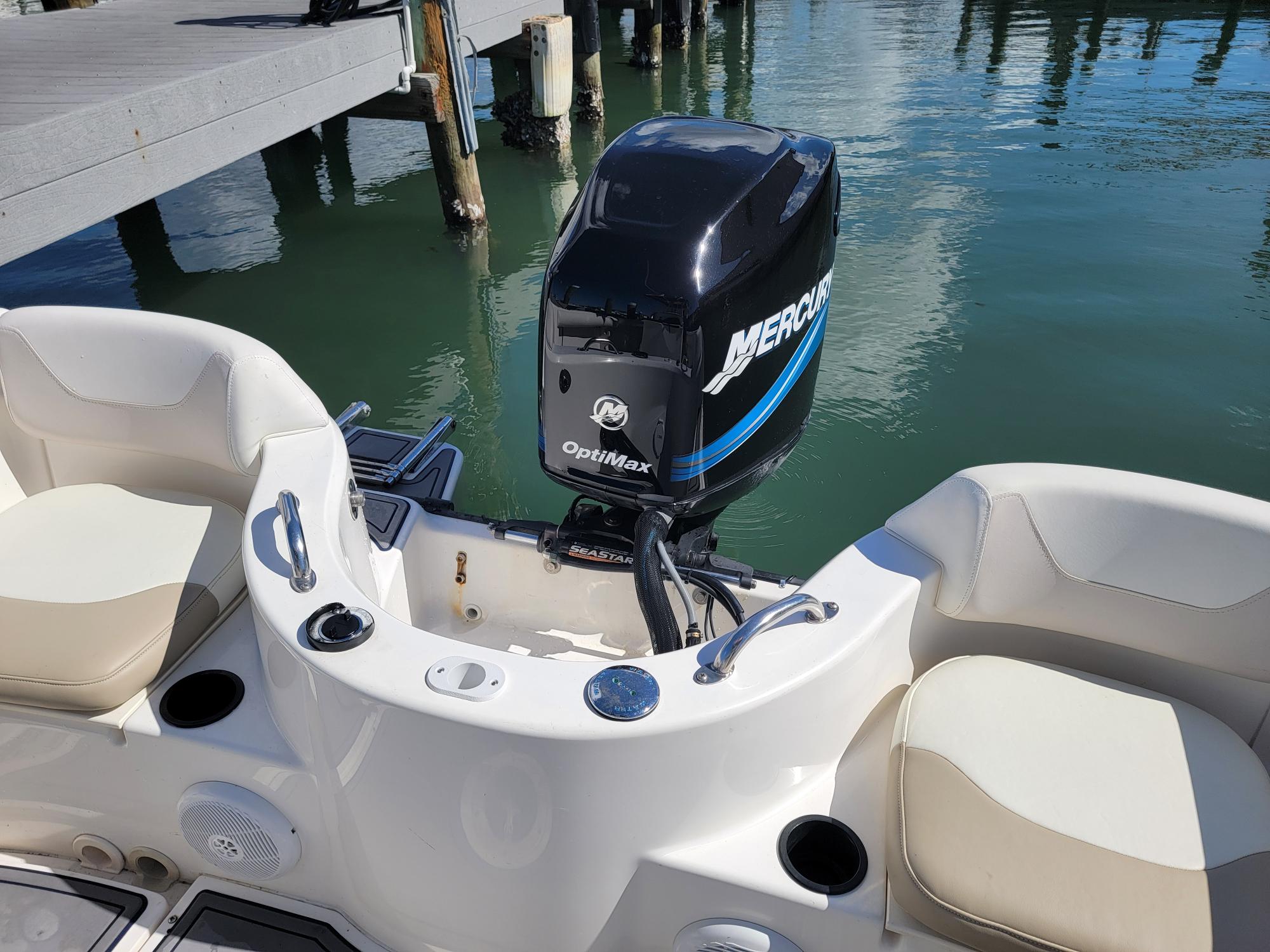 Cleanest Outrage you will find anywhere With 200 HP Mercury Optimax motor, Sea Deck flooring, Stainless Prop, Hydraulic trim tabs, canvas t-top like new, full covers, tackle storage, live well, fish box, rod holders, leaning post w/ fold-down foot rest, Upholstery all like new, ice chest, compass, Built in Garmin GPS Fishfinder, VHF w/ distress and much more... Stored indoors at high and dry so Does not have a trailer. Ask about available trailers For more information or to schedule a time to see this vessel call or text 913-485-4172 or email Dave@cmcboats.com Financing available including those with less than perfect credit. To see a Video Sea Trial of this vessel go to:https://youtu.be/8q292uwsRKM