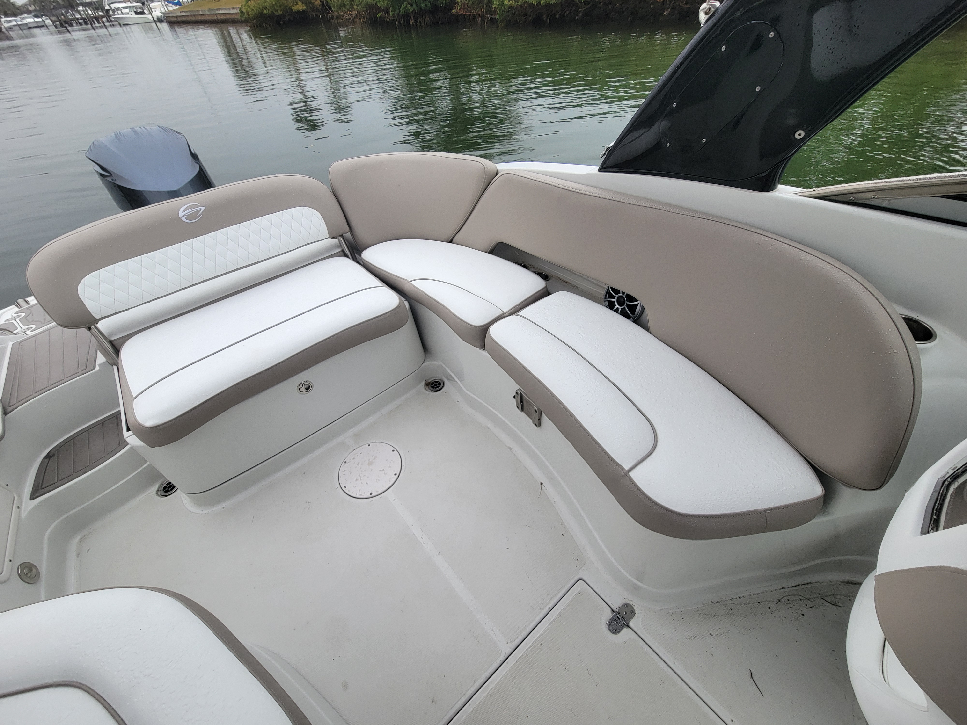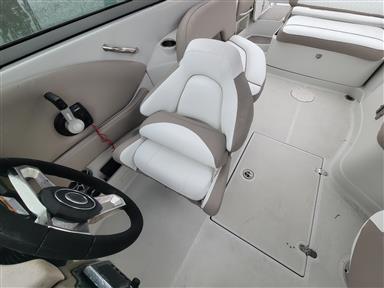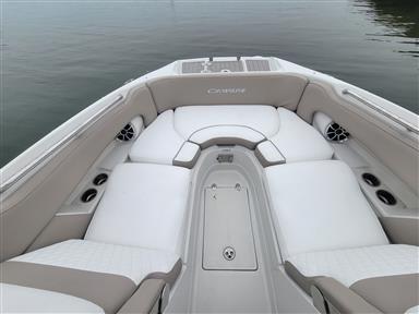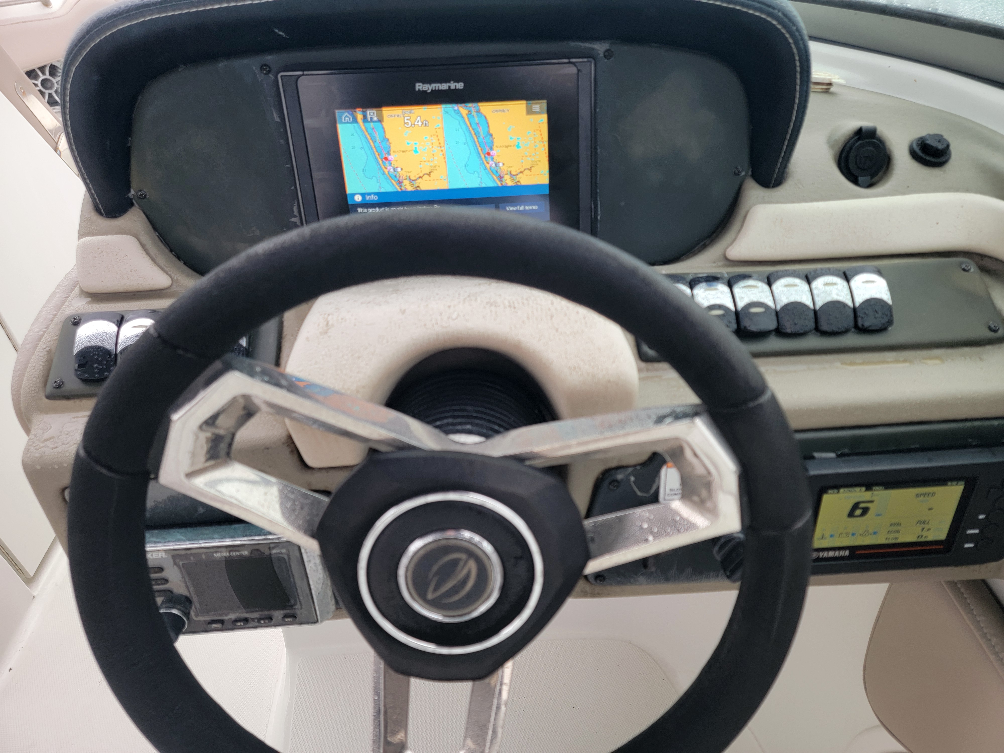Pristine Spacious Bow Rider with beautiful interior is like new, Ample seating for family and friends, Features dependable 300 HP Yamaha motor with 24 month ENGINE WARRANTY, Stainless prop, bimini with fold-down power Tower with the push of a button, walk-through transom, Vacu-Flush head w/ sink, Raymarine GPS Fishfinder, Yamaha Smart guages, Kicker sound system and much more...Does not have a trailer so ask me about trailer options if needed. For more information or to schedule a time to see this vessel call or text 913-485-4172 or email Dave@cmcboats.com Financing available including those with less than perfect credit. To see a Video Sea Trial of this vessel go to: https://youtu.be/OaFZKwHx_q0