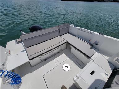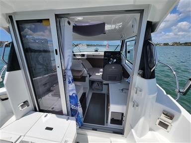 Very spacious comfortable pocket cruiser for couple or small family in excellent condition With 150 HP Mercury outboard motor with 24mo MOTOR WARRANTY, trim tabs, Windlass Anchor, battery charger, walk-through transom, cockpit fridge, windlass, Built in Garmin GPS, Fusion Sound system, comes with newer trailer and much more... For more information or to schedule a time to see this vessel call or text 913-485-4172 or email Dave@cmcboats.com Financing available including those with less than perfect credit. To see a Video Sea Trial of this vessel go to:https://youtu.be/ldsV4-9gOQM