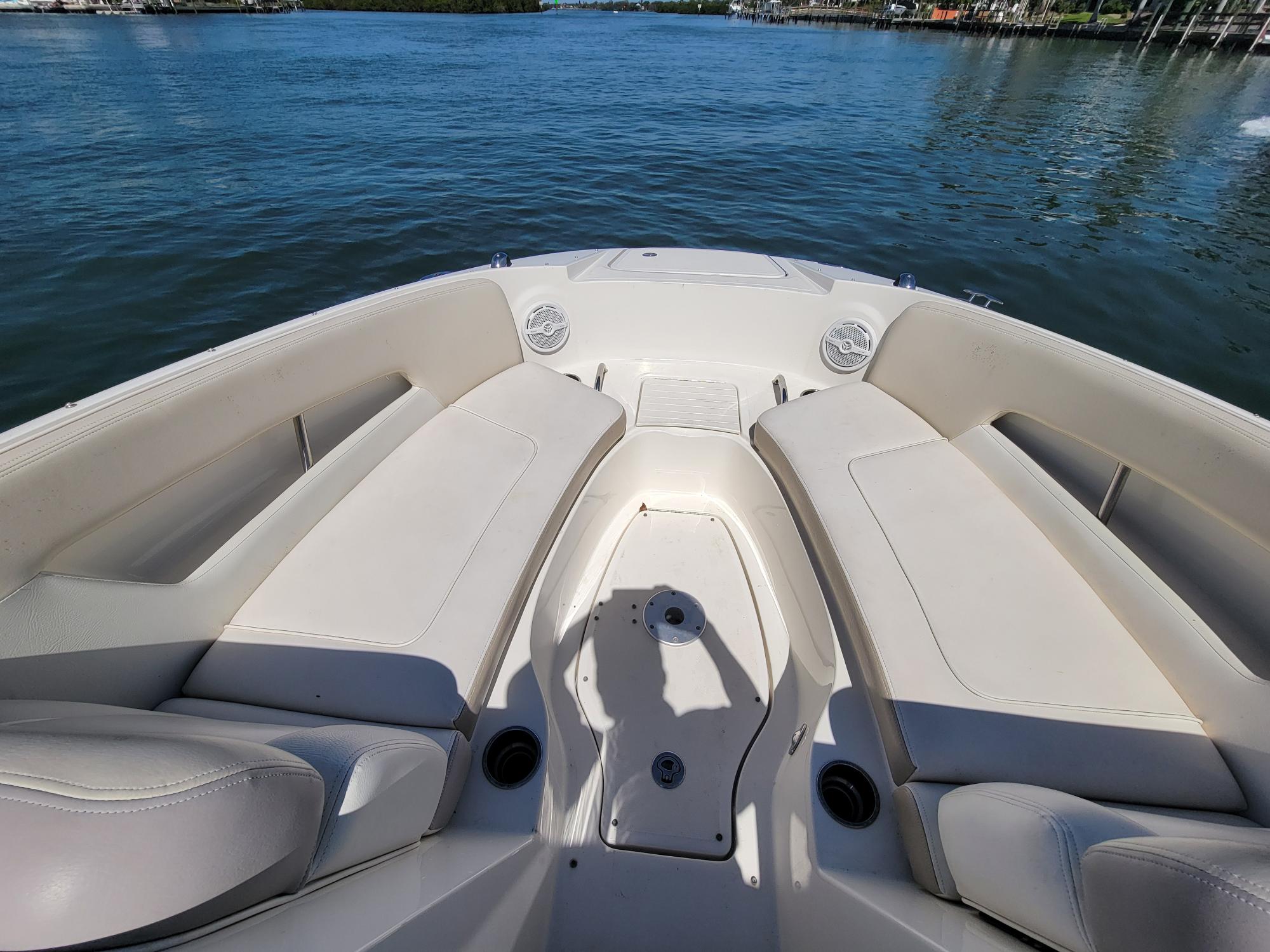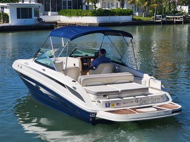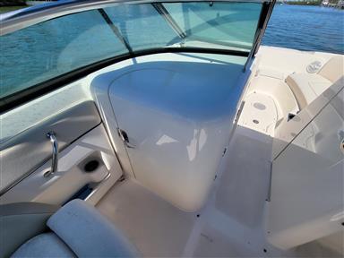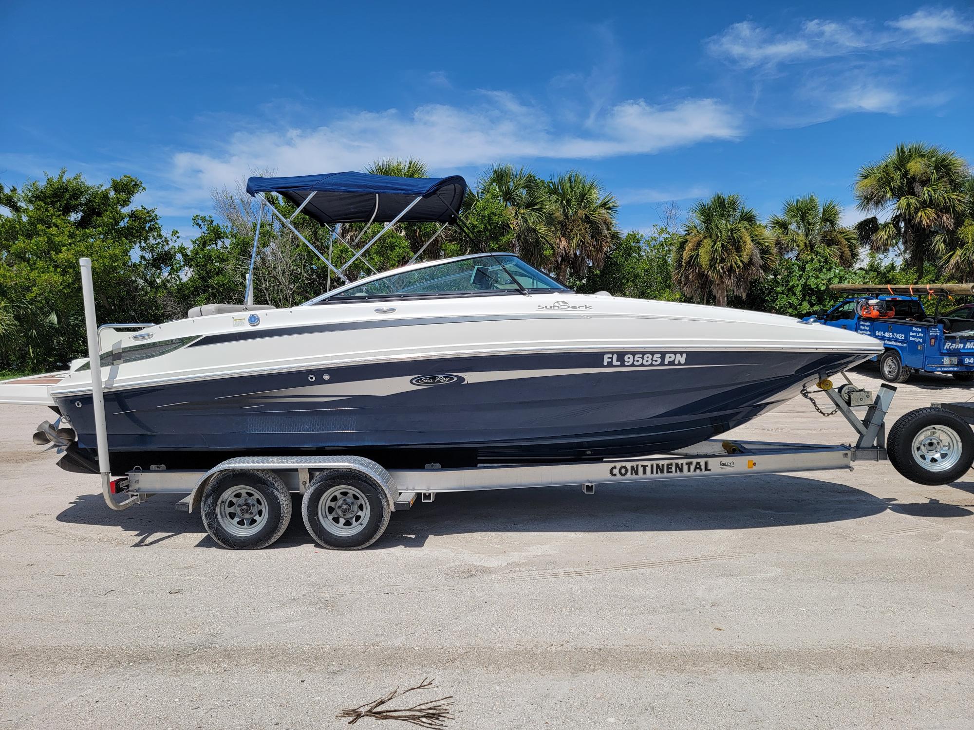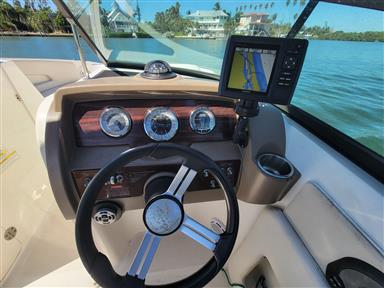 Spacious Deckboat with ample seating for family and friends, beautiful upholstery, With Powerful Mercruiser 5.0 V8 motor, Bravo 3 dual prop Qualifies for optional motor warranty, bimini, cockpit / bow covers, walk-through transom, pop-up cleats, cockpit sink, cockpit table, dual captain's chair w/ bolsters, Vacu-Flush head with holding tank Garmin GPS Fishfinder, JVC Sound system with bluetooth, comes with aluminum trailer and much more... For more information or to schedule a time to see this vessel call 941-485-9500 or text 913-485-4172 or email Dave@cmcboats.com. Financing available including those with less than perfect credit. To see a Video Sea Trial of this vessel go to: https://youtu.be/5stTS8dycqM