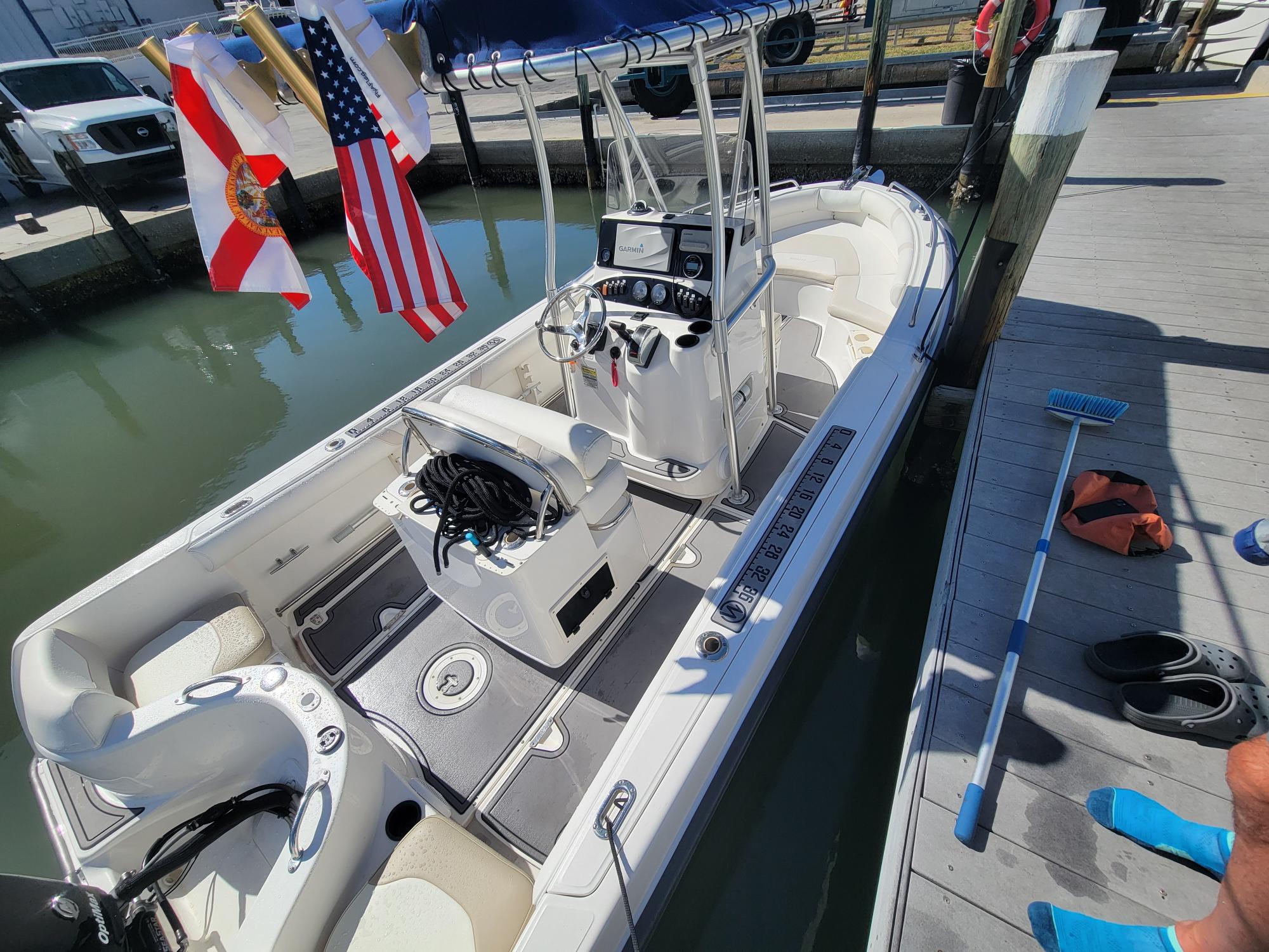 Cleanest Outrage you will find anywhere With 200 HP Mercury Optimax motor, Sea Deck flooring, Stainless Prop, Hydraulic trim tabs, canvas t-top like new, full covers, tackle storage, live well, fish box, rod holders, leaning post w/ fold-down foot rest, Upholstery like new, ice chest, compass, Built in Garmin GPS Fishfinder, VHF w/ distress and much more... Stored indoors at high and dry so Does not have a trailer For more information or to schedule a time to see this vessel call 941-485-9500 or text 913-485-4172 or email Dave@cmcboats.com. Financing available including those with less than perfect credit.
