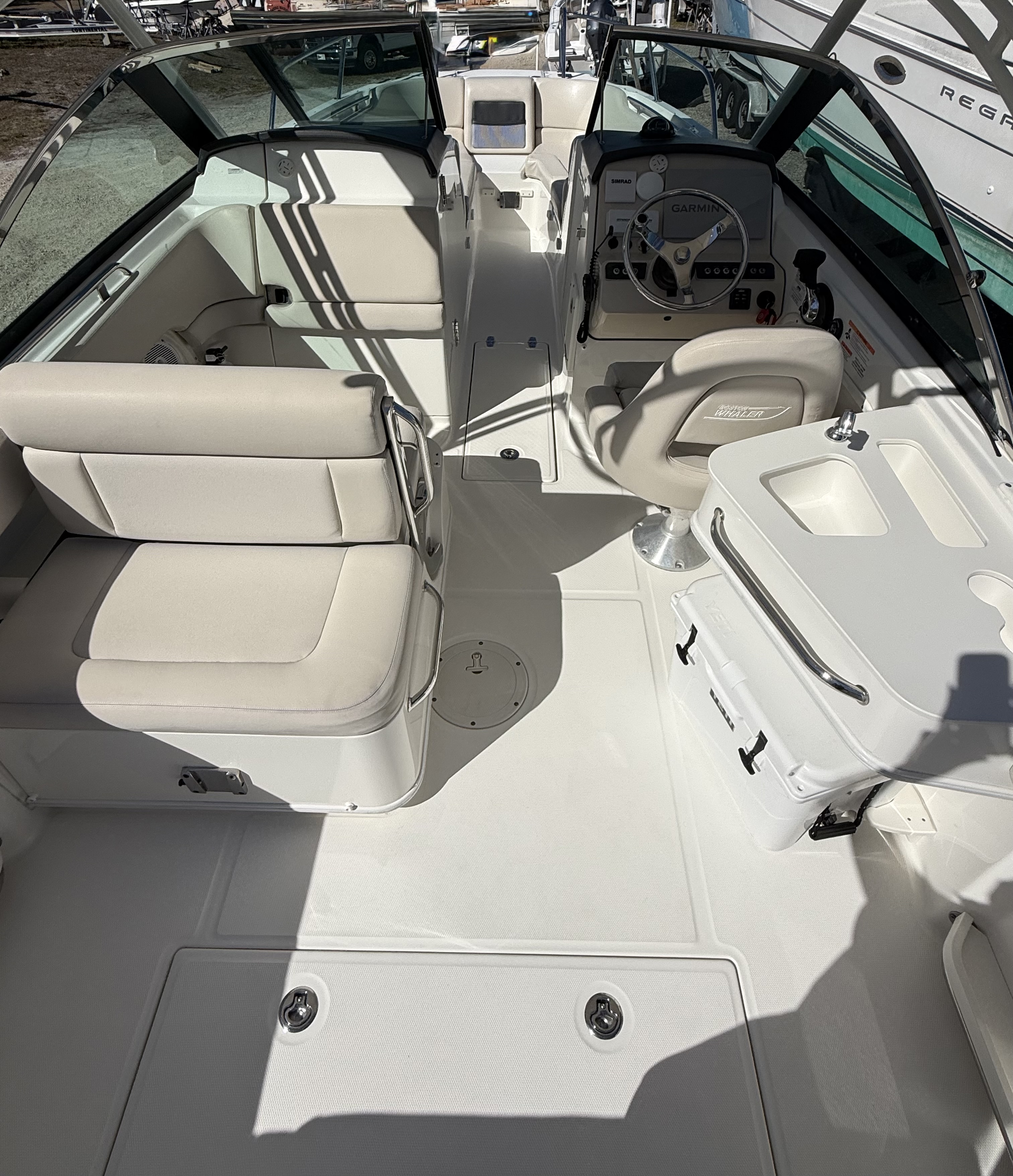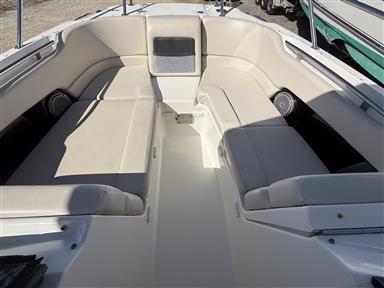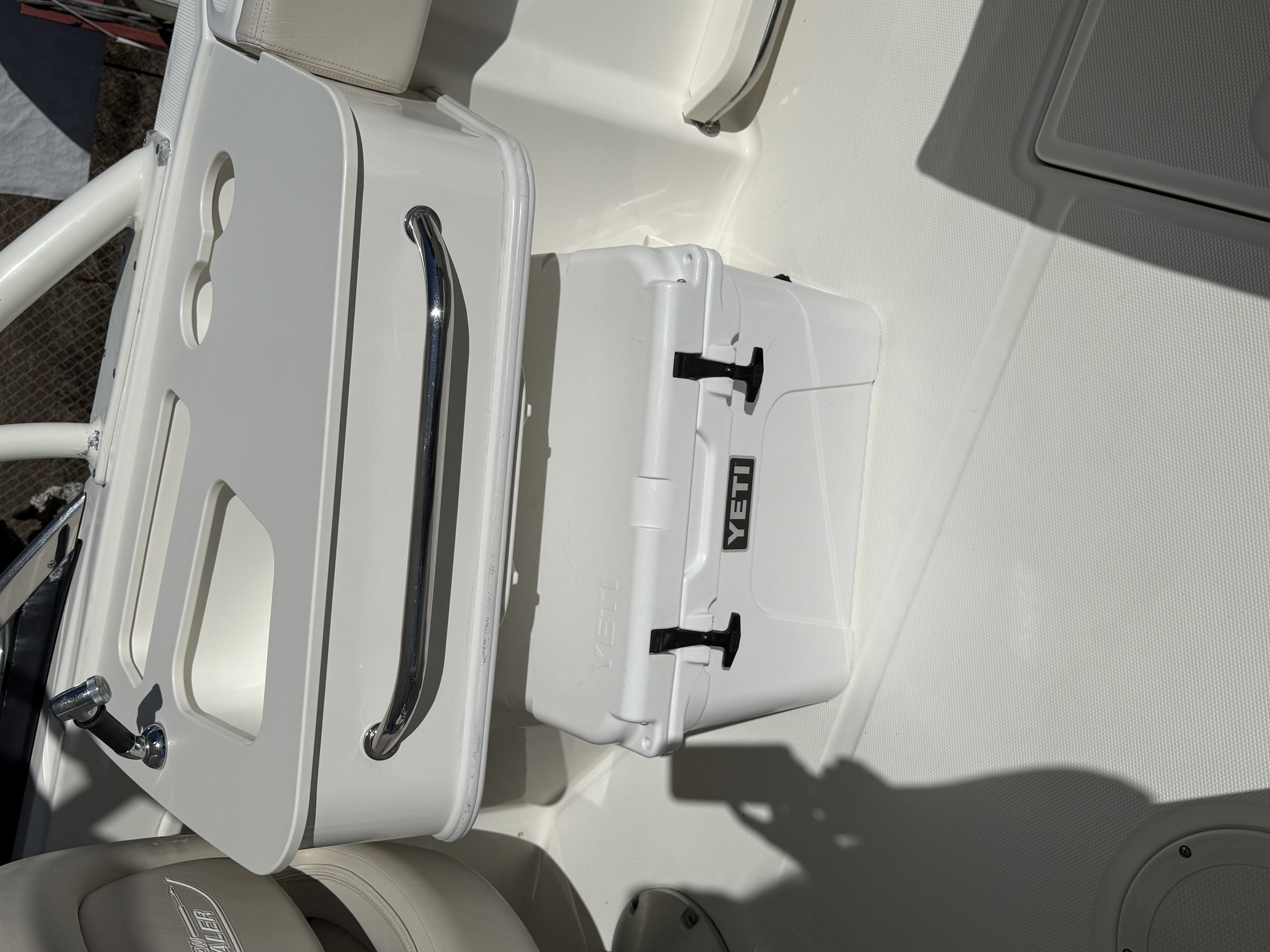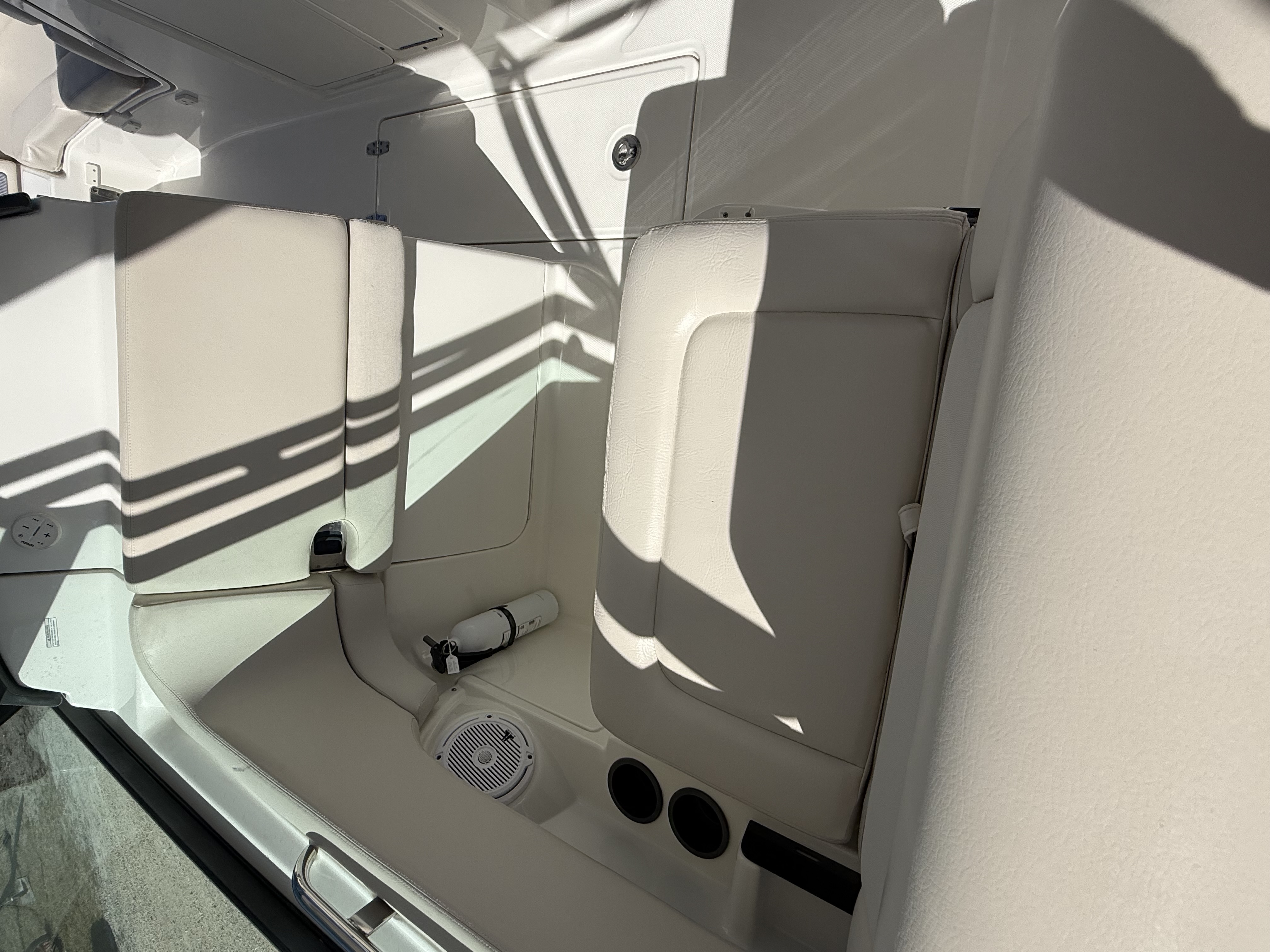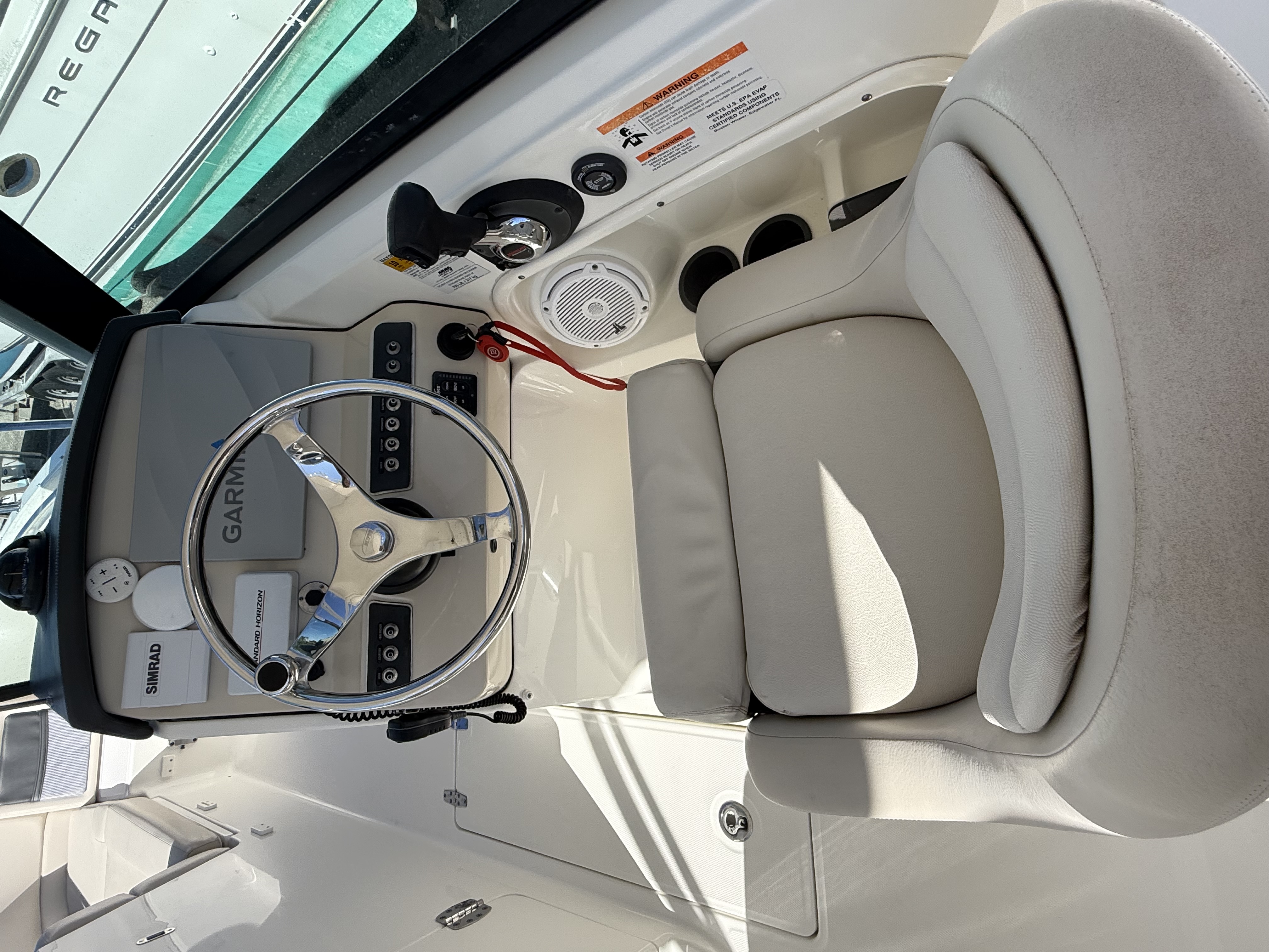 Well kept 230 Vantage Boston Whaler 23' duel console Boat Features a convertible port lounge seat, a fold-away stern bench, a spacious bow area, and a dedicated head (toilet) with a sink. 300 HP Mercury Verado motor, SS Prop, 2 batteries with a on/off switch, on board 20 AMP 3 bank Prosport HD20 plus, tilt steering wheel, compass, in-dash depth gauge, Garmin GPS Map XSV GPS, fish finder, depth finder, AM/FM Fusion stereo, Simard motor gauge, VHF w/ distress, trim tabs, rocket launchers, hard t-top, motor covers, walk-through transom, cockpit sink, cockpit table, water wash-down, bow filler cushion, rear bench seat, captain's chair w/ cushions, Porti-Potty w/ Holding Tank head w/ sink, and much more... Located in Nokomis, FL. Does not come with a Trailer. Call Coastal Marine at 888-256-0339 or email sales@cmcboats.com for more information.