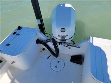 This well equipped Center Console is a great starter boat With 90 HP Johnson motor, Stainless prop, Newer canvas t-top with T-bag, Powerpole anchor, live well, fish box, rod holders, bow filler cushion, leaning post, compass, Newer Garmin GPS fish finder, depth finder, Newer Fusion stereo with Bluetooth , Sirius Xm, stored at indoor marina so does not have a trailer, Ask sales about available trailers... For more information or to schedule a time to see this vessel call 941-485-9500 or text 913-485-4172 or email Dave@cmcboats.com. To see a Video Sea Trial of this vessel go to: https://youtu.be/7UDBk4-CFQw