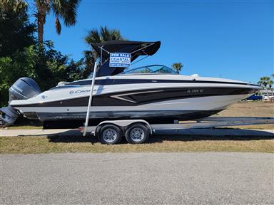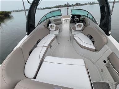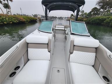 Pristine Spacious Bow Rider with beautiful interior is like new, Ample seating for family and friends, Features dependable 300 HP Yamaha motor with 24 month ENGINE WARRANTY, Stainless prop, bimini with fold-down power Tower with the push of a button, walk-through transom, Vacu-Flush head w/ sink, Raymarine GPS Fishfinder, Yamaha Smart guages, Kicker sound system and much more...Does not have a trailer so ask me about trailer options if needed. For more information or to schedule a time to see this vessel call or text 913-485-4172 or email Dave@cmcboats.com Financing available including those with less than perfect credit. To see a Video Sea Trial of this vessel go to: https://youtu.be/OaFZKwHx_q0
