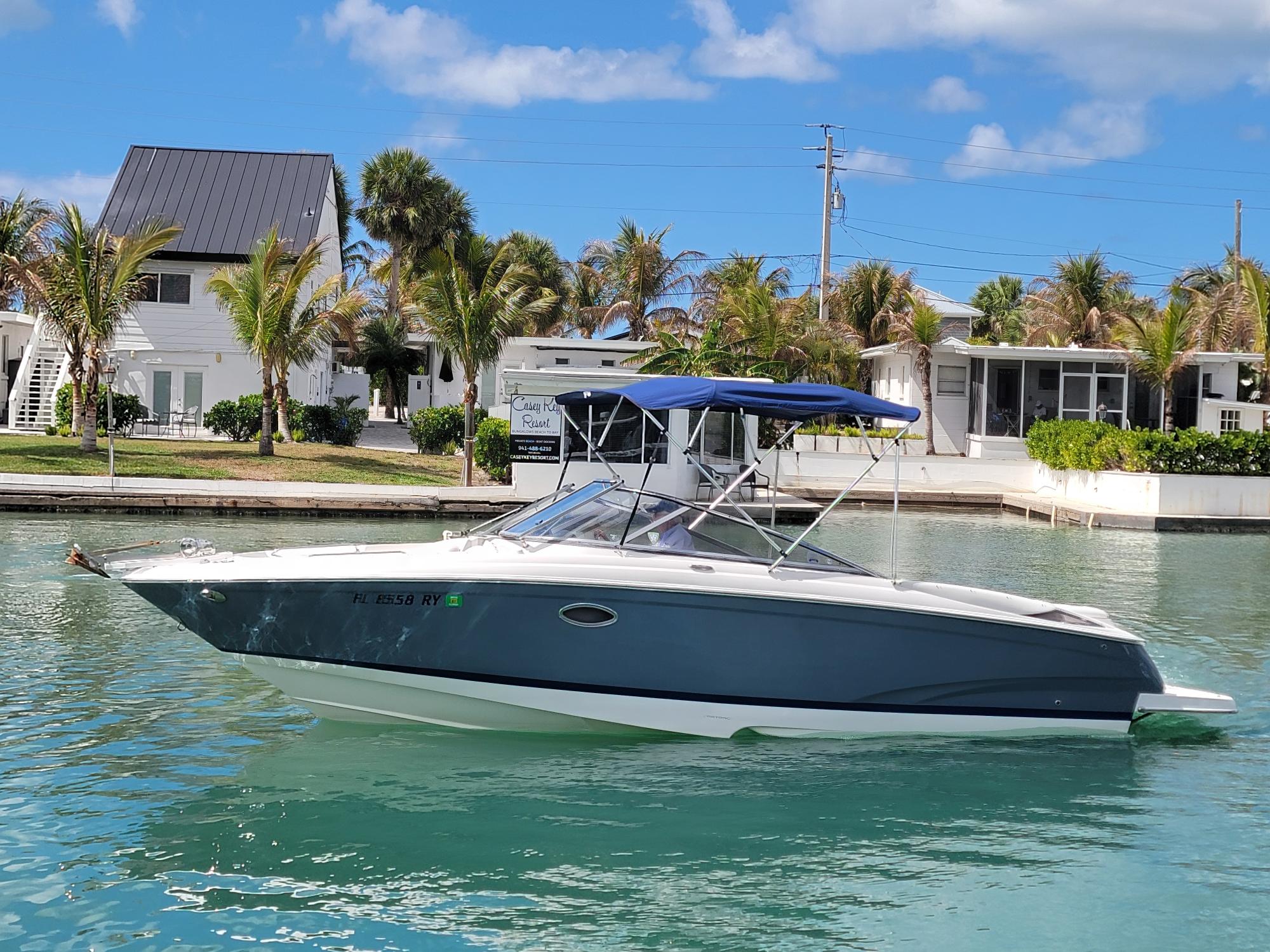 Pristine Bow Rider With new 8.1 longblock Volvo Penta motor, has 12 hours, perfect upholstery, Seadeck flooring, trim tabs, bimini, full covers, walk-through transom, pop-up cleats, windlass, pressure sink, Vacu-Flush head, Garmin GPS fishfinder, VHF w/ distress, comes with Aluminum tandem trailer and much more... For more information or to schedule a time to see this vessel call 941-485-9500 or text 913-485-4172 or email Dave@cmcboats.com. Financing available including those with less than perfect credit. To see a Video Sea Trial of this vessel go to: https://youtu.be/32b28hKAlyQ