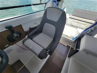 Very spacious comfortable pocket cruiser for couple or small family in excellent condition With 150 HP Mercury outboard motor with 24mo MOTOR WARRANTY, trim tabs, Windlass Anchor, battery charger, walk-through transom, cockpit fridge, windlass, Built in Garmin GPS, Fusion Sound system, comes with newer trailer and much more... For more information or to schedule a time to see this vessel call or text 913-485-4172 or email Dave@cmcboats.com Financing available including those with less than perfect credit. To see a Video Sea Trial of this vessel go to:https://youtu.be/ldsV4-9gOQM